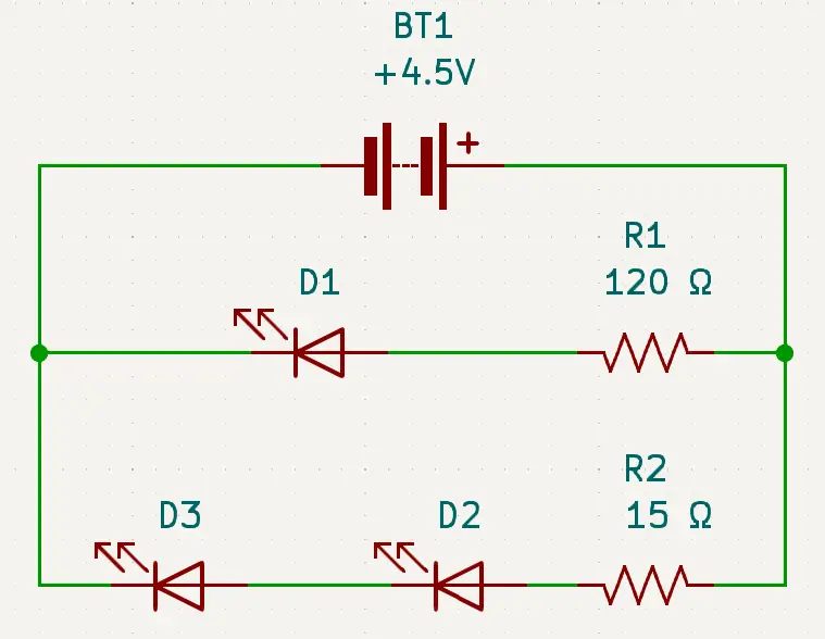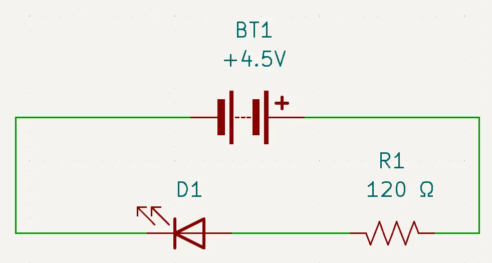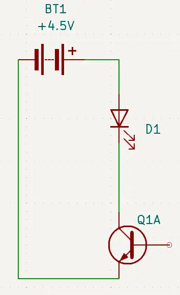 We know that Output is where the power will output itself, so that is where we need to connect the anode of the LED (D1). But remember, a LED needs a resistor inline so that it doesn't pop. So please use Ohm's Law to determine the resistor (R3) value to place before the anode. We will also need to connect the cathode of the LED (D1) to the negative (black) (BT1).