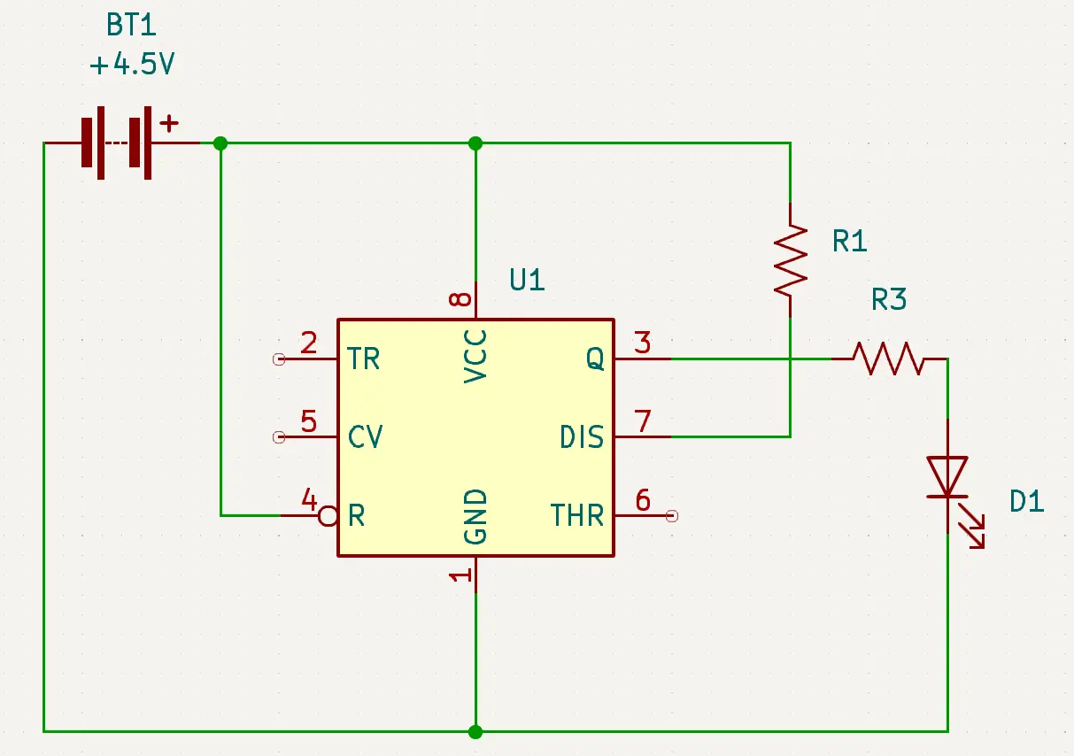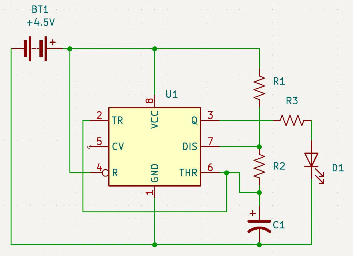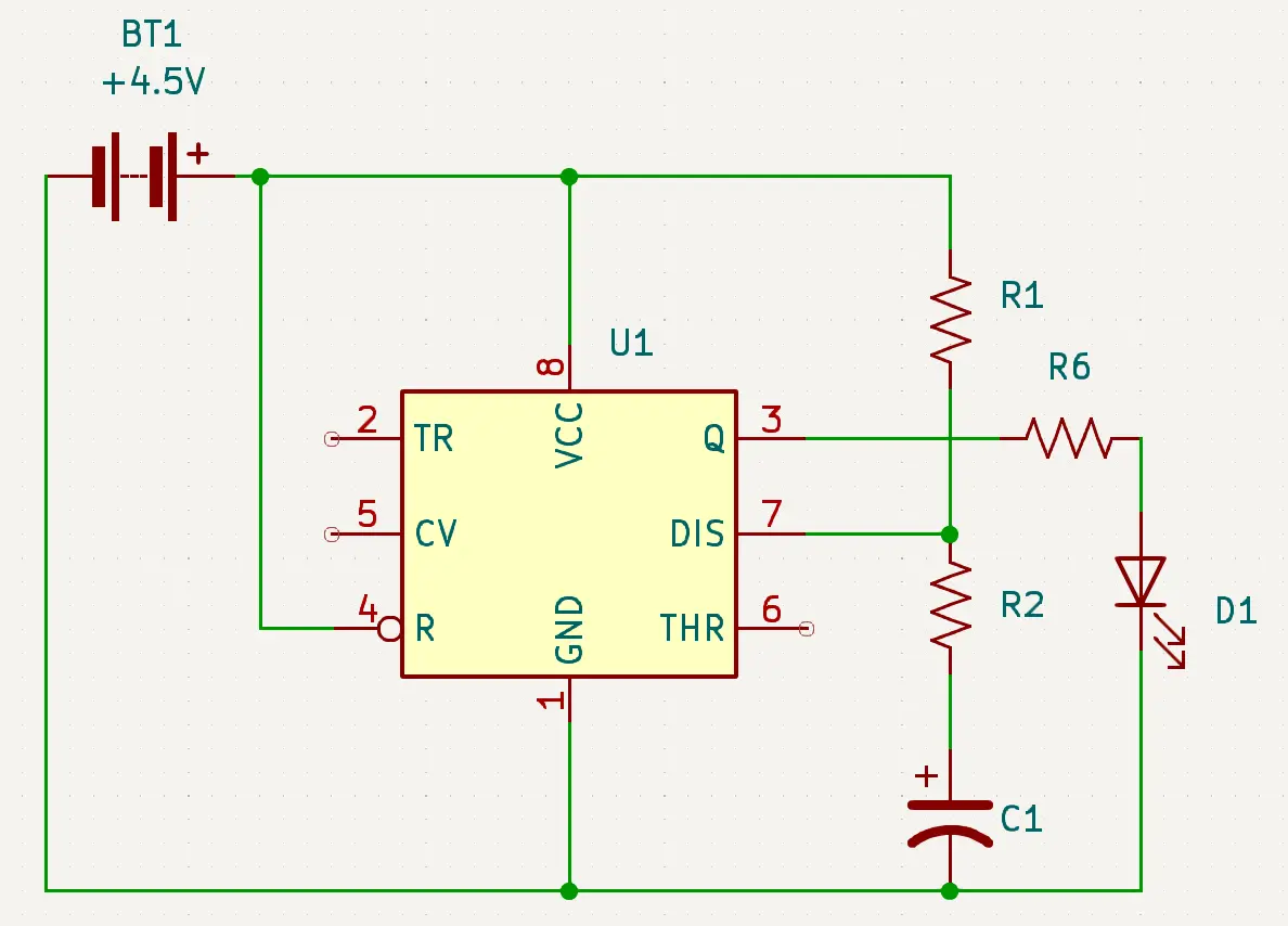 So now that we know a little bit about how the 555 Timer IC (U1) works, we can really start to design our circuit.